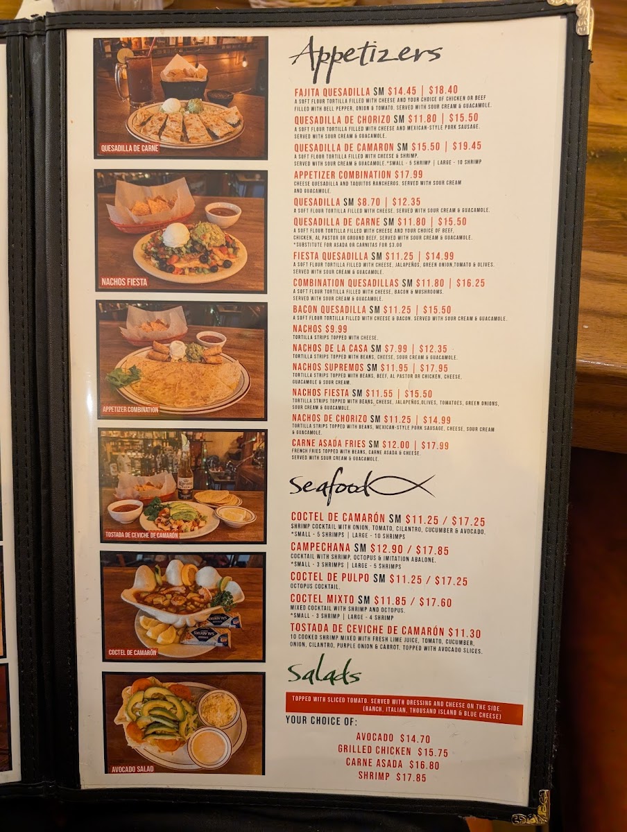 Grilled steak or chicken cooked with bell pepper, onions & tomato served with rice, beans, pico de gallo, guacamole & tortillas. Choice of either albondigas soup, tortilla soup or salad.